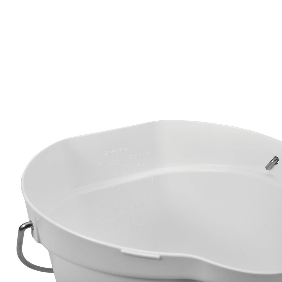 This plastic bucket is made of FDA compliant raw materials. Polypropylene offers good durability and chemical compatibility. Maximum temperature is 250° F (121° C). The Cary Company offers these buckets in a variety of colors to allow for a color-coating system to mitigate the risk of cross-contamination is food processing facilities and allow workers to more easily comply with food safety standards.