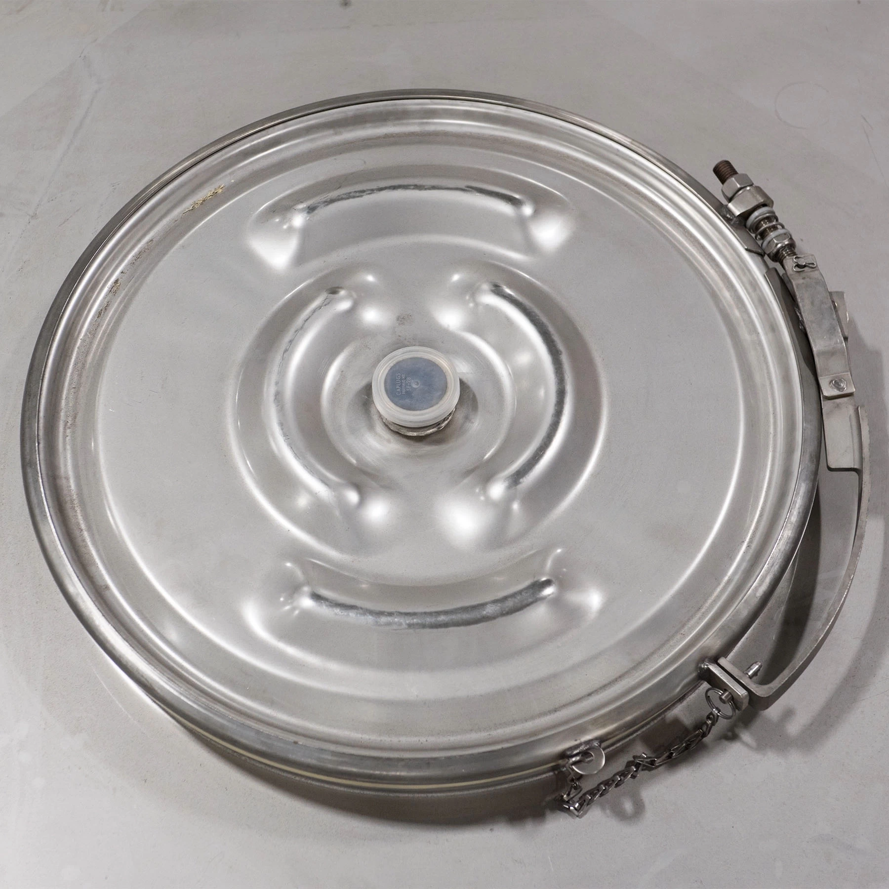 - 22 1/2″ dia. top fill opening with drum cover with a 2″ Tri-Clamp Ferrule installed in center of cover, white food grade gasket & Stainless Steel leverlock clamp ring assembly