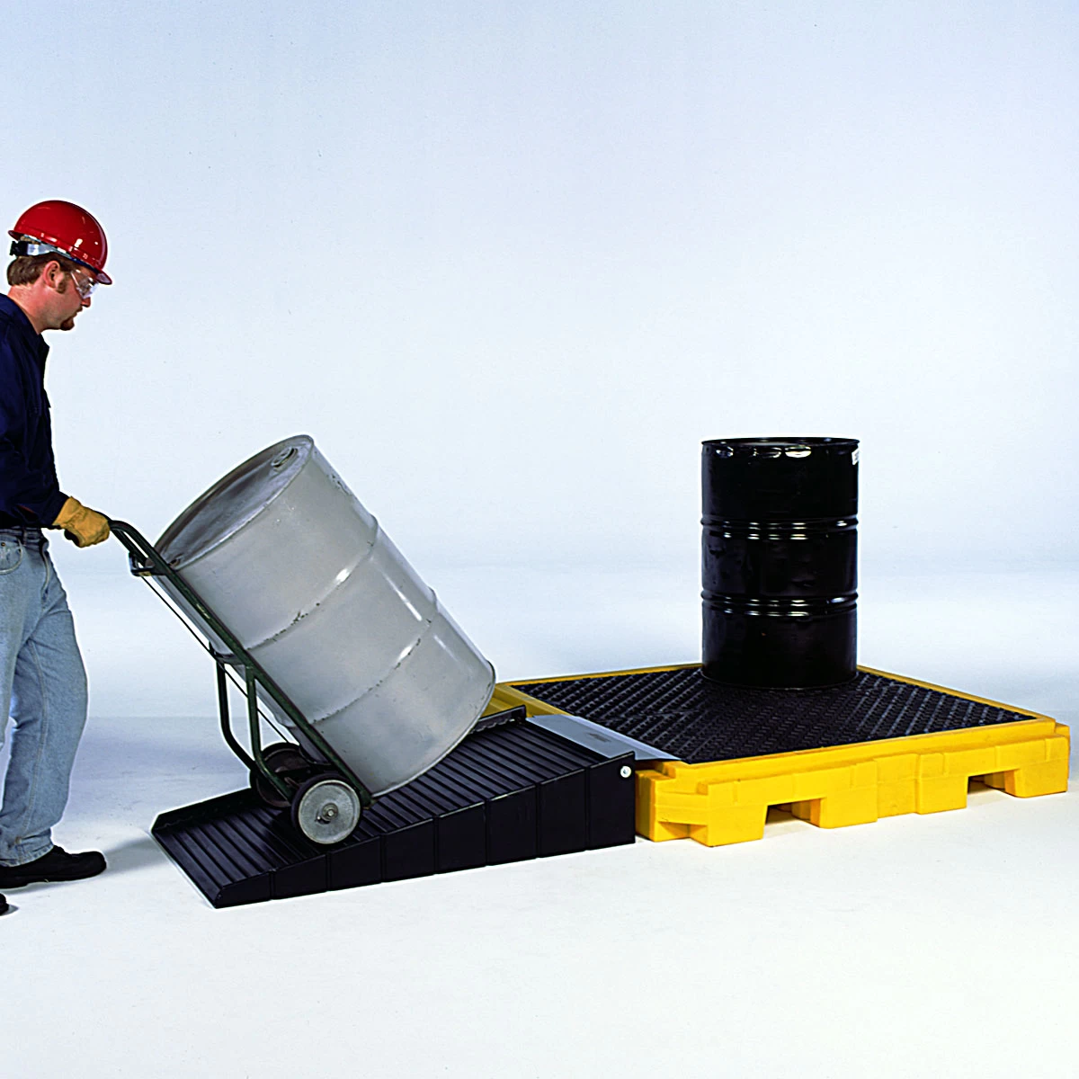- Nearly 50% lower than standard spill pallets, drum handling is safer and less strenuous