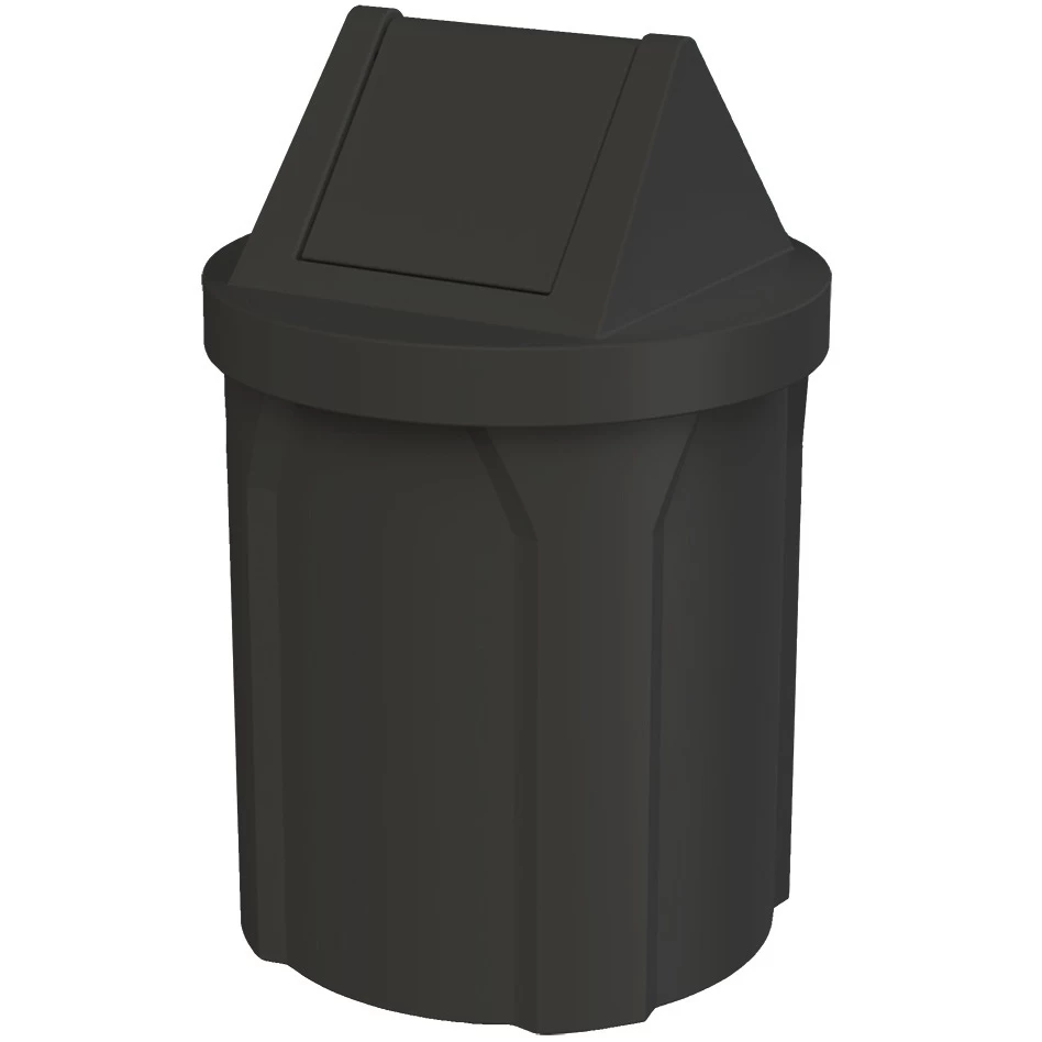 Made from high-strength, fade resistant high-density polyethylene (HDPE), this trash can is durable and can withstand harsh outdoor environments like rain or wind. This unit will not chip, peel or rust and the smooth sides are easy to clean compared to slatted alternatives. At 42 gallons, this receptacle works well in high-traffic locations where you need a moderated-sized trash can. The handled liner is cost-effective as it can replace the need for expensive trash bags. Simply remove and empty the black liner when the trash can fills up.