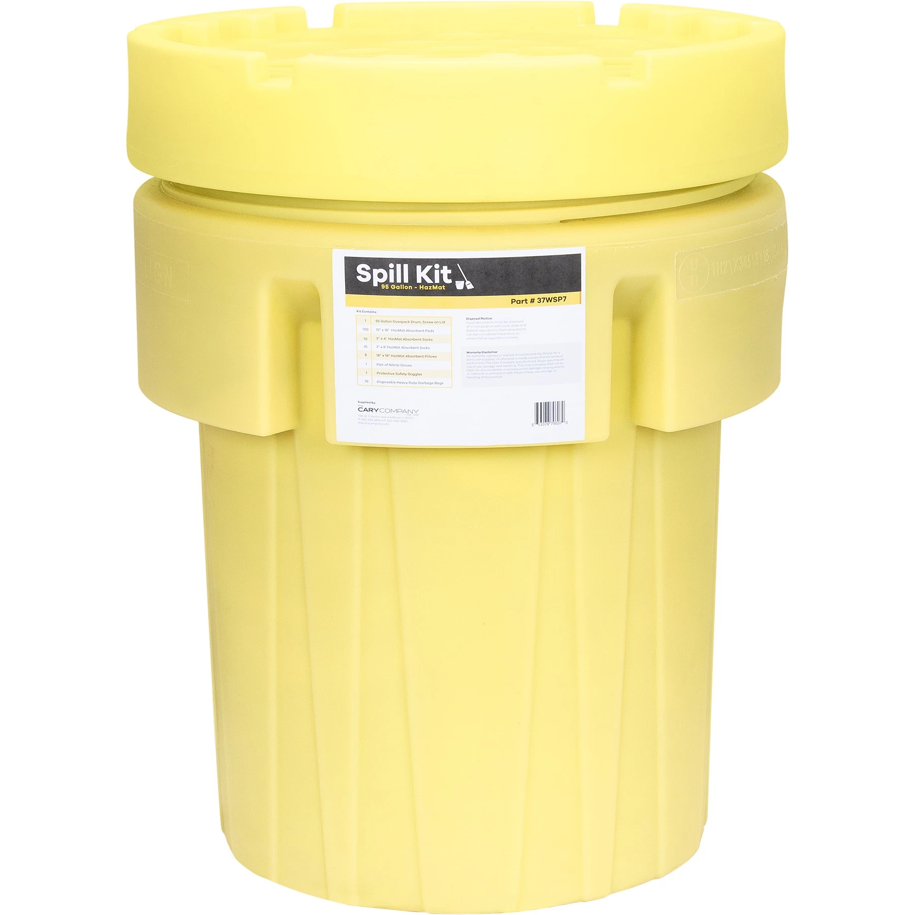 This 95 gallon drum is made from linear low-density polyethylene (LLDPE) which has a good chemical resistance from liquids such as corrosives and strong acids/bases. The drum is bright yellow for easy identification and includes a lid to keep contents protected and covered when not in use. This drum is UN rated (UN1H2/X345/S). - Proudly Made in the USA. The Cary Company builds each spill kit locally in Addison, Illinois.