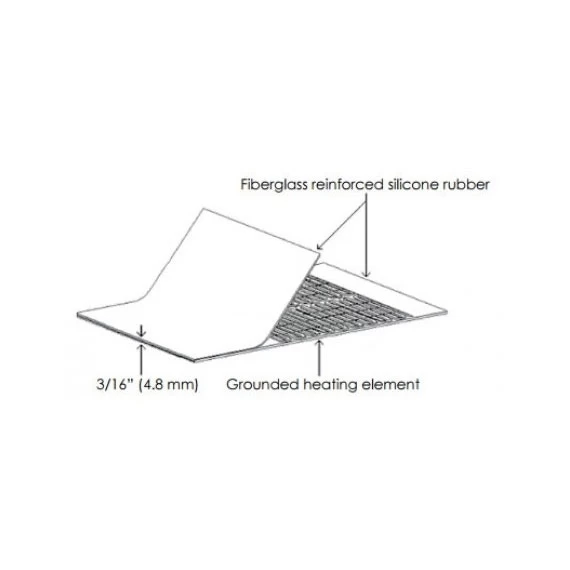 - Heating element is laminated between two layers of 20mil fiberglass reinforced silicone rubber.