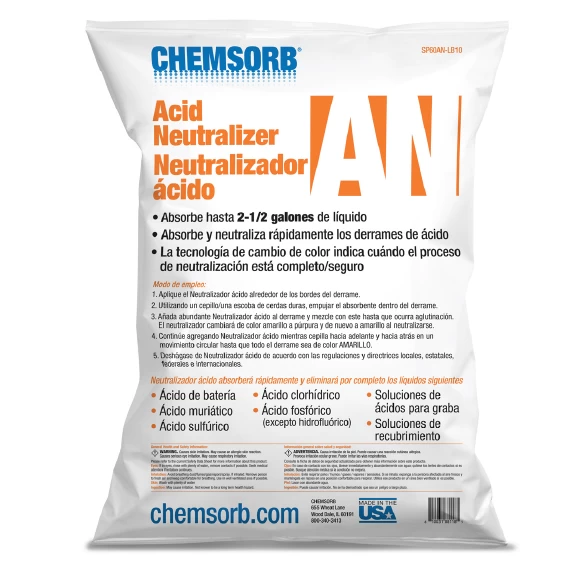- Formulated to absorb and neutralize acid spills (except for hydrofluoric acid). The color change technology (from yellow to purple and back to yellow when neutralized) lets the responder know when the acid has been neutralized and cleaner to handle.