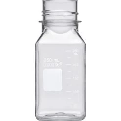 250ml Clear PET Plastic Square Media Bottle W/Cap, 24/cs (Corning® #431531)