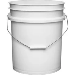 6.5 Gallon White Plastic Pail W/Plastic Handle, Threaded Opening, Life Latch, UN Rated